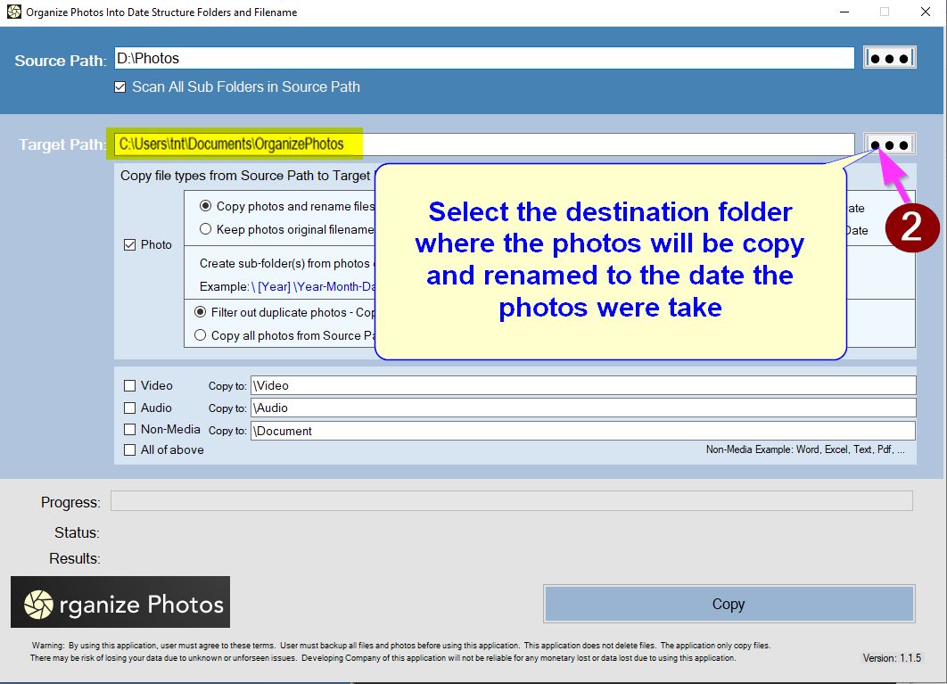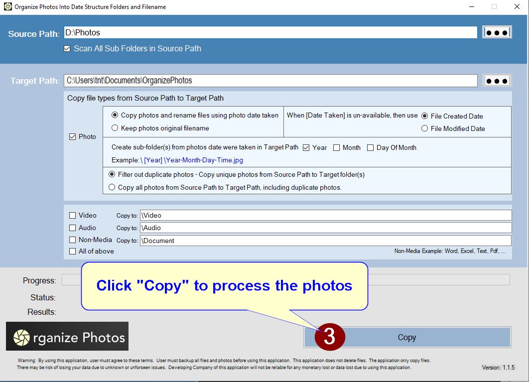 Step 4: Click "Copy" button to process the photos to the Target folder.